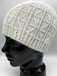 Zigzagging columns of twisted stitch cables travel up this highly textural hat.