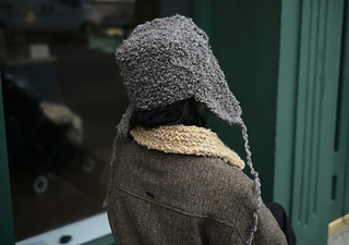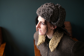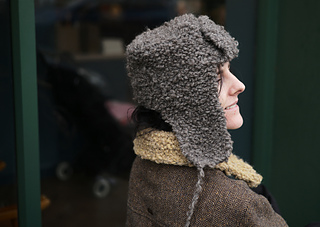 out sheepskin, fur, or heavy woven textiles. Neither the process of knitting, nor the fabric created through knitting, lends itself to that type of design. This is why knitted earflap hats -