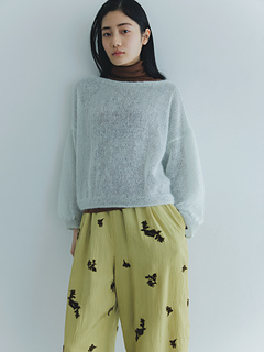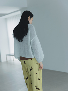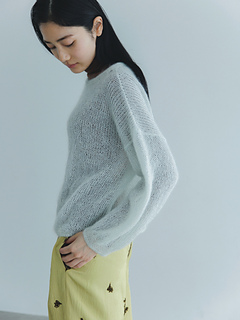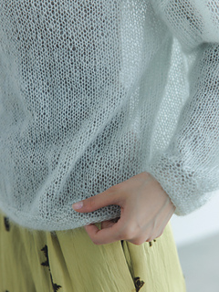 ふわふわした編み地から覗く透け感が魅力的なプルオーバーです。繊細で美しい極細のモヘヤで編むので、仕上がりはとても軽く、チクチクしないので、素材の良さを感じることができます。