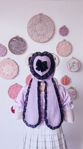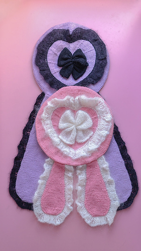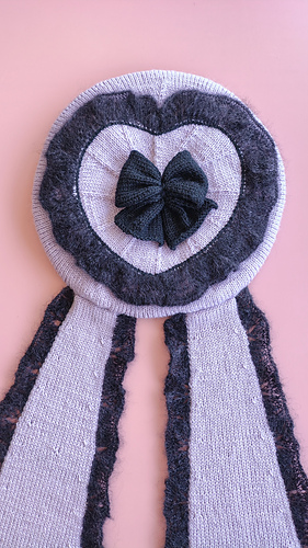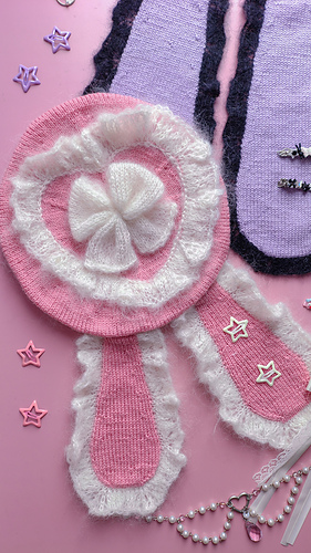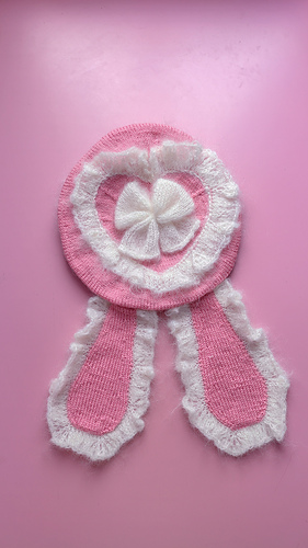 After the base is finished, decorative elements are added: a heart-shaped mohair lace edge at the top, a mohair bow in the middle and 2 bunny ears.
