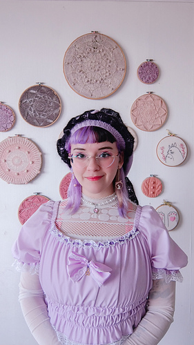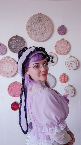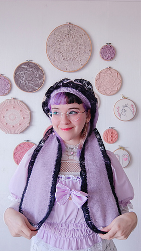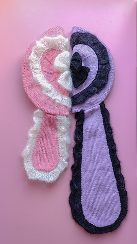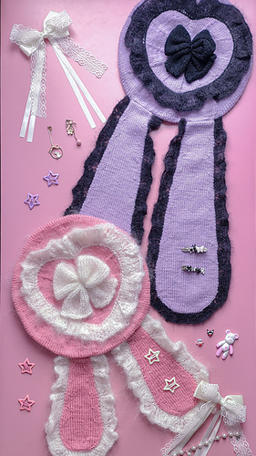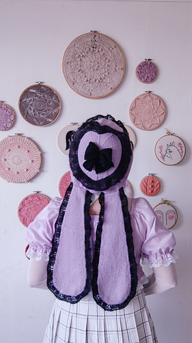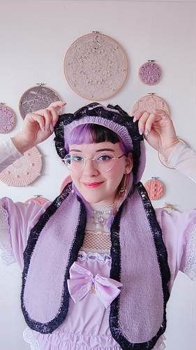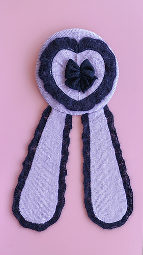 Finally, the bunny ears are worked from the bottom-up in the round and finished with another lace edge, then sewn to the beret.