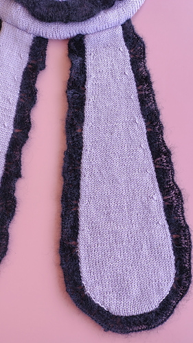 It starts with a 1x1 rib, decorated with a mohair lace edge.