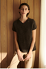 This pullover is worked top-down, working back and forth in stocking stitch from the collar and then in rounds with twisted raglan stiches. Increases are made along these raglan stitches until reaching underarm. Then the body and sleeves are worked separately in stocking stitch. The last several rows of the bottom front and back body are worked separately to make a split hem. Borders for both front and back bottom edges and sleeves are worked sideways while decreasing body stitches at the same time.