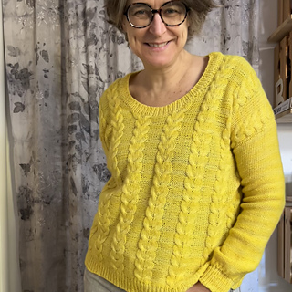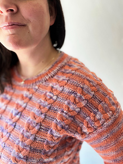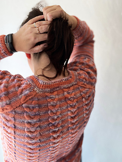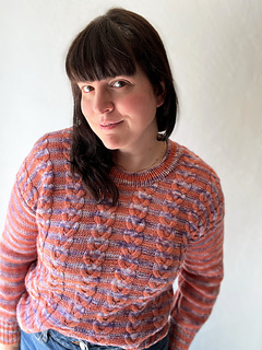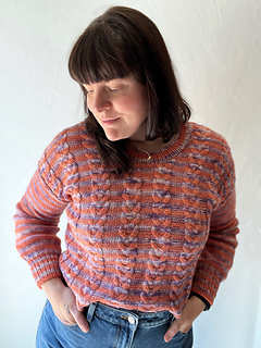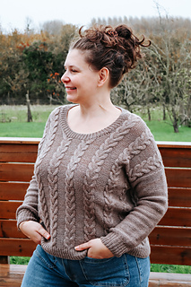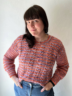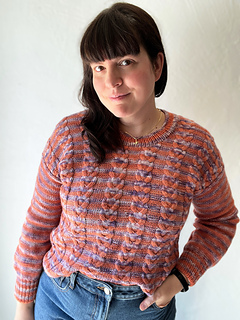 Tricoté d’une seule pièce, du haut vers le bas et sans coutures, Velma combine une construction fluide à un jeu de textures riche et rythmé. Les torsades structurent le corps du pull, tandis que les manches, plus simples, apportent un bel équilibre à l’ensemble. Malgré son apparence travaillée, le modèle reste simple à suivre et agréable à tricoter.