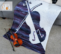 The Vibrato Violin crochet pattern is a modern, fun, and unique twist to a traditional instrument afghan. The instrument silhouette pops next to the self striping yarn in bold colors next to white. But, make the blanket in a solid color for a more traditional look. These blankets can be customize to anyone and will be popular among all generations.