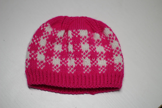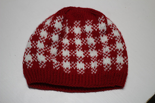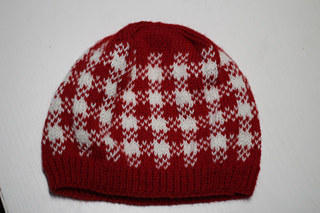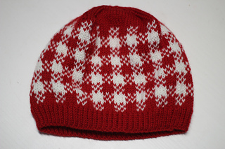 Es un gorro tejido en colorwork, a dos colores, con un motivo vichy, muy sencillo. Es un regalito perfecto, un proyecto de satisfacción inmediata.