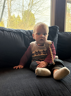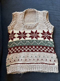 This pattern is a nod to a vintage Christmas vest you might pick up at a thrift store. Cozy and classic, this vest is ready for your needles and for the little ones in your life!