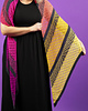 The Basílica de la Sagrada Família in Barcelona is breathtaking in its structure and intricate facade, but entering the church is an otherworldly experience. Rays of light through stained glass windows transform the stone archways into a riotous rainbow of colors. Inspired by the Gaudí masterpiece, this wrap combines structure with ornate beauty. Bold colors use slipped stitches to create mosaic rays while only knitting one color at a time. These rays spread color through the dark MC, opening into gothic archways of flowing lace, transformed by bold and beautiful colors. Choose a gradient or rainbow with strong contrast with the MC to create your own dramatic Vistosa wrap.