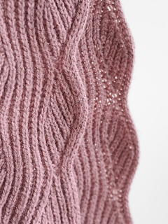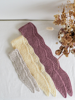 Like with the other Vloed design, the design for the Vloed Scarf was inspired by the movements of water, especially of the sea. The flowing brioche stitch pattern, created by increases and decreases, mimics the way water comes and goes, with waves gently crashing on the shore. To make sure the wavy edges are nice and firm, a small I-cord is worked at both edges. The pattern is written for 3 sizes, varying in both length and width. The smallest one fits around the neck just once with a knot, while the largest can be doubled with longer ends. It’s a fun and engaging knit resulting in an eye-catching scarf.
