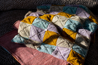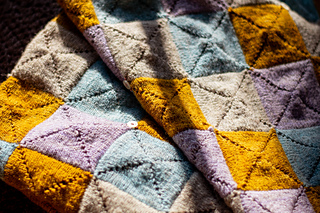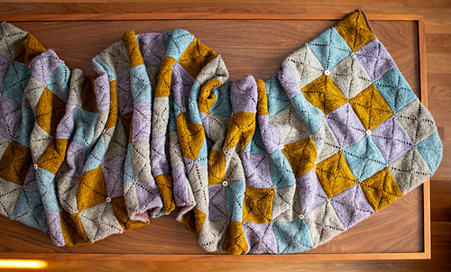 A modularly-knit, rectangular wrap made up of squares worked in the round from the centre out. Each square begins with a small number of stitches, and increases worked with double yarnovers create diagonal lines that intersect at the corners. The squares are joined with Three-needle bind offs on all edges, no sewing required!