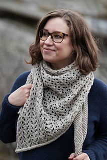 Worked in worsted-weight yarn, Warrior is a satisfying knit with a soothing rhythm. The bias triangle shape gives it structure and drape, and the I-cord bind-off adds a polished finish.