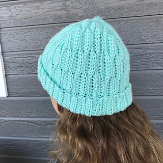 The Waves of Hope Hat is designed in a simple way of crocheting a flat piece in the shape of a rectangle. It is then seamed together and sewn together at the top to close the hat. To adjust the height of the hat you can simply fold the base to make it the right height.
