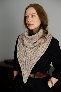The Wavey Cowl is designed as a companion to the matching Wavey Hat, with both patterns showcasing the same flowing cable motifs. Worked from the pointed edge upward, the cowl grows into a generous shape that sits neatly across the chest while transitioning into a deep ribbed collar.