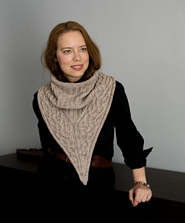 The cowl is worked flat in one piece from the pointed end up to the neck opening.