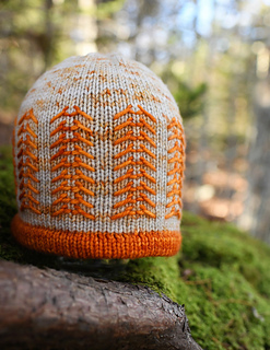 The hat comes in six sizes (80, 88, 96, 104, 112, and 120 stitch cast ons) and is written for six gauges (from four to six and a half stitches per inch in half stitch increments).
