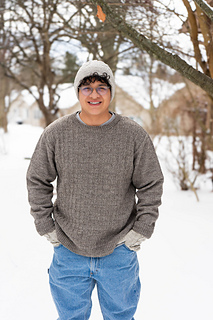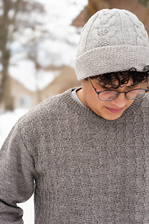 This soft pullover in 12 sizes (XS to 2X) and 3X to 8X for men and teen boys offers plenty of options to customize. With a simple knit/purl patterned body, modified drop shoulder, and stockinette sleeves, the subtle texture shines in a smooth, sport weight yarn. Knit in pieces from hem to shoulder with seams, the fit is easy and less structured. Three neckline options are included to make it one’s own.