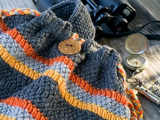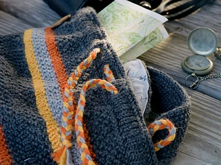 The duffle bag provides a roomy hold-all which will carry everything you need for a day’s walk in the woods. The knitting is straightforward so the project grows quickly, and the interior is lined with a cotton/linen fabric for extra strength.