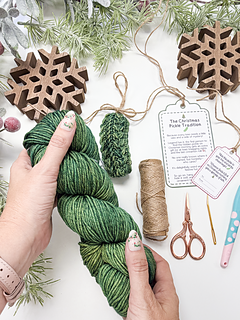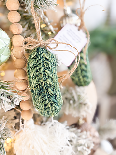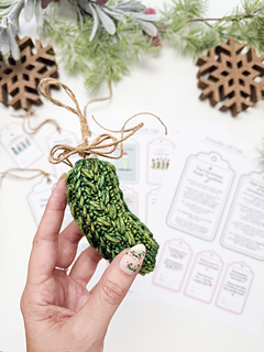 We’re keepin’ it simple — and a little silly — just like a Christmas pickle should be! You’ll start with a basic chain and work a fun, easy 4-row repeat to create a soft, textured rectangle. Once that’s done, join the long edges to form a tube (hello, pickle shape!), seam the top closed, and add a twine loop so it can dangle proudly on your Christmas tree. Finish it off with a bit of stuffing and close the bottom — boom, you’ve officially crocheted a holiday legend. And don’t forget to add one of the adorable (and punny) printable gift tags for the final flourish!