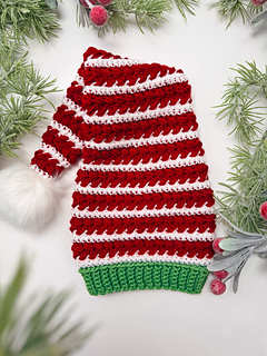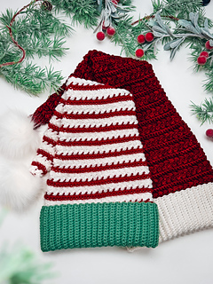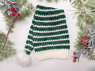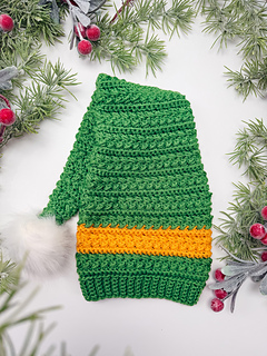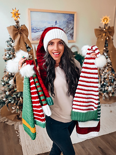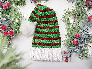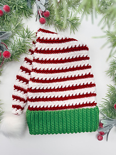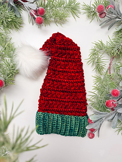 Feeling extra whimsical? Create elf-inspired stripes by switching colors every two rounds for that iconic North Pole look! Prefer to channel Santa himself? Keep it simple with a solid red version for a classic Christmas vibe. Easy shaping and gradual decreases create the long, pointed stocking-cap silhouette everyone loves. Finish it all off with a fluffy pompom for the perfect festive flourish.