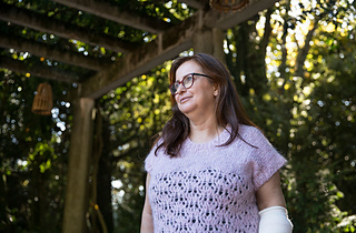 The Whisper Vest is a layering piece that balances coziness with elegance. Worked in a cozy yarn with a subtle shine, it feels both warm and luminous, making it perfect for those in-between seasons. The result is a vest that whispers contrasts—subtle sparkle and sturdy stitches, warmth and openness, comfort and grace—all flowing together in a timeless knit.