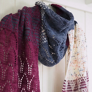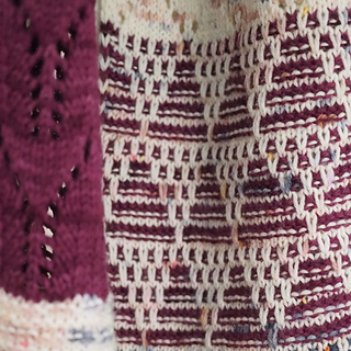 A scarf with stripes of garter stitch, slip stitch and lace pattern