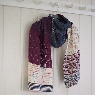 Ein Schal mit Streifen aus kraus rechte Maschen, Hebemaschen- und Ajourmuster