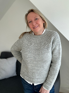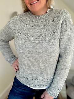 Winter Seashore Stroll Sweater is worked in one piece, in the round, from the top down. The EOR marker is placed at the back centre.