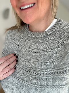 Both: Short rows are worked for shaping the neck area of the sweater which are followed by a series of textured stitch patterns that form the yoke. The final yoke increases are worked in raglan sleeve fashion. After this, you proceed to sleeve and body separation.