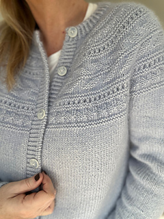 Winter Seashore Stroll Cardigan is worked in one piece, flat, from the top down. The sleeves are worked in the round.