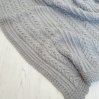 This blanket is a small crib-sized blanket but it can easily be sized up if you have more yarn, or indeed knit in a worsted/aran weight yarn on larger needles.