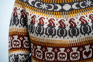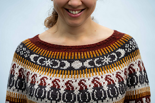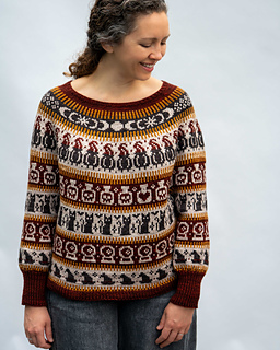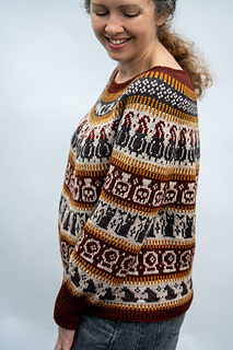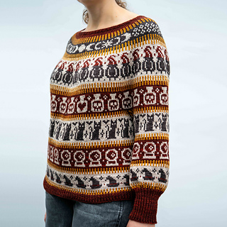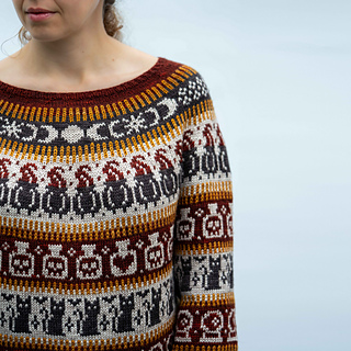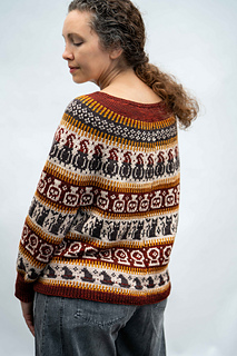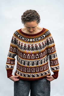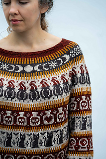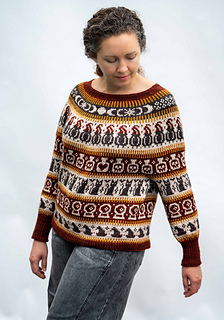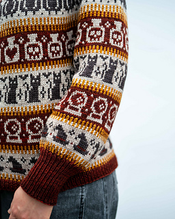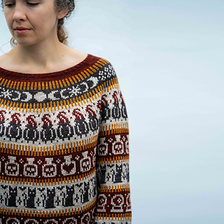 This sweater is knit seamlessly from the top down using four beautiful colors. Its deep yoke creates a cozy look—perfect for layering on those chilly nights spent brewing potions. If you prefer a more classic fit, fear not! The pattern includes a full set of alternative charts to create a shorter yoke depth. To help you craft your ideal garment, the pattern comes with a comprehensive modifications guide. Inside, you’ll find detailed instructions for adjusting sleeve circumference and yoke depth, as well as tips to customize your sweater to suit your personal style.