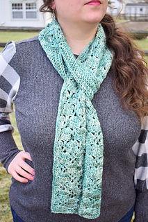 A cute and cozy keyhole scarf with intricate looking stitch pattern.