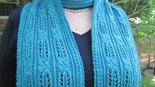 If you love knitting intricate cable lace stitches, you’ll love knitting this scarf. The scarf combines a distinctive cable with lace insets. The cables are off-set in this pattern, making it a bit easier than it looks. The cable lace stitch comes to us from Japan.