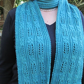 The scarf was expertly test knitted by Rosa Cefelu who can be contacted at: silentrose311@gmail.com. The sample was knit using Lorna’s Laces Shepherd Sport, in colorway Turquoise , and requires 3 - 4 skeins to knit.