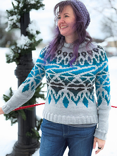 Techniques used: Knitting in the round, short rows, stranded knitting, lifted increases, Ladderback Jacquard.