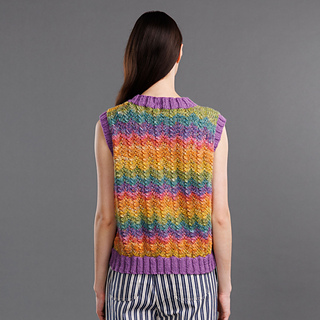 Stand out in the colorful style of this knit vest from Red Heart Super Saver and Red Heart Super Saver Bitty Stripes.