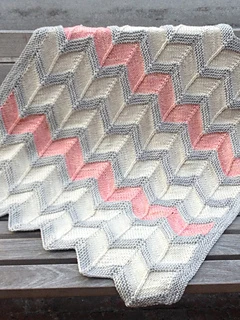This baby blanket is made using a quick knitting chevron stitch pattern and chunky weight yarn. Choose three colors (or more!) and zig & zag your way to an adorable baby accessory. Alternating stripes of garter and stockinette provide texture and visual interest. Side borders are picked up after the body of the blanket is complete.