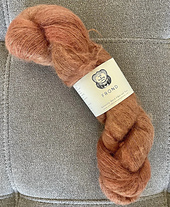 Frond is a radiant beam of halo and glow, due to its content of mohair and silk. Light as a cloud, with a fluffy halo of mohair surrounding a strong silk core, knit Frond by itself to create an airy fabric, or held double to add a little thickness and even more halo! You can also knit it held alongside another yarn; we love it paired with Flock, Gather, and Horizon.