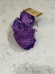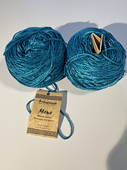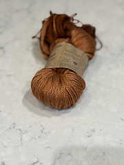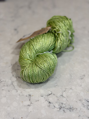 100% Mulberry Silk with approx 220 yards per 100g that knits to 5.0 sts per inch on a US 7.0 needle.