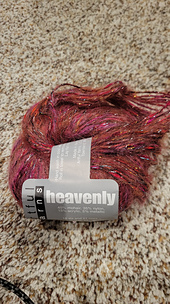 One strand of mohair combined with railroad track yarn with a metallic binder.