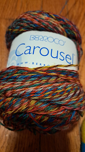 A lightweight and colorful yarn with yardage that goes on and on, Carousel features color flowing all through the plies giving off an overall balanced look. It works up beautifully in bold textures like entrelac and big crochet motifs. It has 4 plies with a uniform, slight halo texture.
