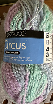 An entertaining medley of texture and color, Circus is carefree and comfortable. The machine washable wool blend is spun into a playful thick-and-thin yarn and works up quickly into colorful sweaters and accessories.