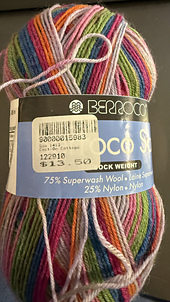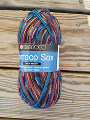 “Berroco has now entered the sock yarn business with their self-striping, fingering-weight gem “Berroco Sox”. This yarn combines the strength and softness of nylon with the warmth of wool. Machine washable in gorgeous color combos from neutrals to brights, this great choice is ideal for snuggly socks, comfy gloves & mittens, and even warm lacy garments.“