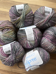 Using an impressionistic spray-effect dye technique, this yarn features a lot of color dappled throughout the ball. Made of wool and cotton, this is a perfect all-season yarn.