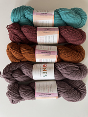 As a result of its lofty woolen-spun construction, Tones knits wonderfully at a variety of gauges and can be used interchangeably with Imbue Worsted and Shelter.