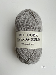 Økologisk Hverdagsuld is a traditional 2 ply with 100% organic virgin wool. Økologisk Hverdagsuld is a DK weight yarn with 150 meters per 50 g. The recommended gauge is 20-22 sts x 30 rows and the recommended needle size is 3,5-4 mm.