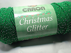 Festive yarn is enhanced with a sparkling silver metallic wrap. 95% acrylic/5% metallic wrap glitter yarn.
