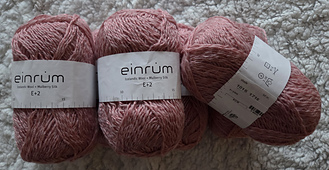 EINRÚM E is Einband from Ístex (100% Icelandic wool, lace weight) plied with 2 threads (E+2) of Thai silk.