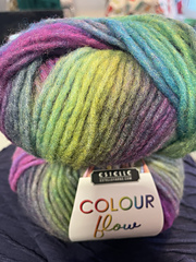 Colour Flow is a super soft, light and airy yarn. With its interesting air-blown construction, it makes wonderful garments and accessories, while the long colour transitions give a water colour like effect to your project!