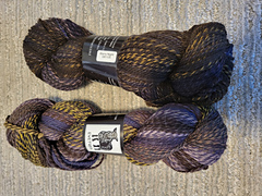 Helix DK is a round and springy, soft (non-superwashed!) striping yarn. It is dyed in the wool and spun at Ewetopia Fiber Mill. Each skein is unique and some imperfections are part of the process, it is a bit like that coveted skein of beautiful handspun. The striping is fairly long, so it is best used for sweaters or larger projects, although hats and cowls also knit up fun!